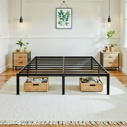 إطار سرير HOOMIC مقاس 14 بوصة مزدوج/كامل/Quen/King ذو منصة معدنية مع مساحة تخزين، لا حاجة إلى صندوق زنبركي، سهل التجميع