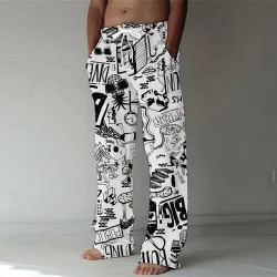 أزياء ربيع/صيف 2023 بنطلونات رجال من القطن والبانبوا بطباعة ثلاثية الأبعاد، شارع هيب هوب، شاطئ، ترفيهية، سريعة الجفاف، بنطلونات رقص ويوغا