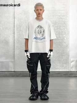 تي شيرت Manhunt Retro Y2K للرجال والنساء ملابس الشارع الأمريكية، بلوزة كاجوال فضفاضة برقبة دائرية عصرية للربيع والصيف