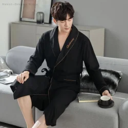 رداء حمام منقوش غير رسمي رجل ربيع الخريف القطن رداء ملابس خاصة طويلة الأكمام كيمونو الذكور الخامس الرقبة الملابس الداخلية الحميمة سبا Robes L-4XL