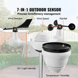محطة طقس لاسلكية SucceBuy 7 في 1 مزودة بتقنية Wi-Fi وشاشة TFT ملونة مقاس 7 بوصات ومستشعر يعمل بالطاقة الشمسية للمراقبة الداخلية والخارجية