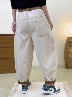 2025 ربيع الخريف حجم كبير الرجعية وهمية قطعتين ضرطة الستار الجينز مايكرو سحب البضائع التخسيس مستقيم مكدسة واسعة الساق السراويل