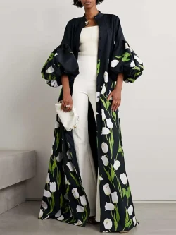 قمصان أنيقة ذات ياقة واقفة مطبوعة بالأزهار، فساتين طويلة للسيدات، أكمام فانوس ربيعية، معاطف واقٍ من المطر بصدر واحد