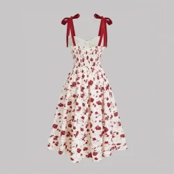 فساتين بحزام سباغيتي لعام 2026 للسيدات فستان فيستدوس لمزاج الزفاف أنيق فرنسي مطبوع عليه زهور حبال رفيعة عصرية