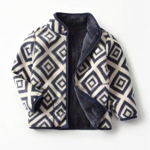 [سترة عتيقة] سترة كلاسيكية منقوشة للأولاد سميكة ودافئة بياقة واقفة وسحاب |عارضة جديدة