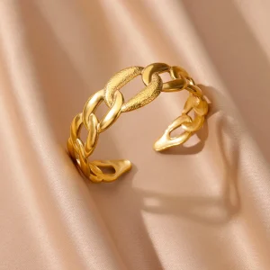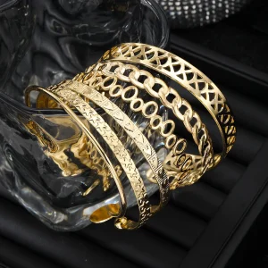 أساور جديدة من الفولاذ المقاوم للصدأ للنساء لون ذهبي فاخر سوار مفتوح هندسي للمرأة مجوهرات زفاف عتيقة هدية