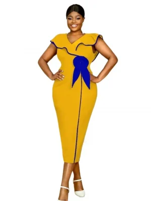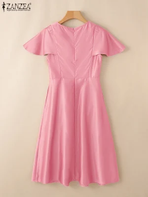 فستان حفلة أنيق من زانزيا 2025 للنساء لصيف العمل، فساتين OL مكتبية، فستان ساتان مكتبي، فستان صيفي قصير الأكمام متوسط الطول، فستان صلب